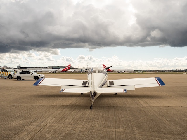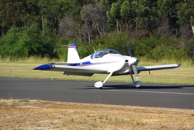 When we're ready to leave the hangar, I'll call up ATC on the radio and give a call like, "Bankstown Ground, Sierra Oscar Lima is an RV-6 on taxiway Hotel with information Alpha, request taxi for an upwind departure."